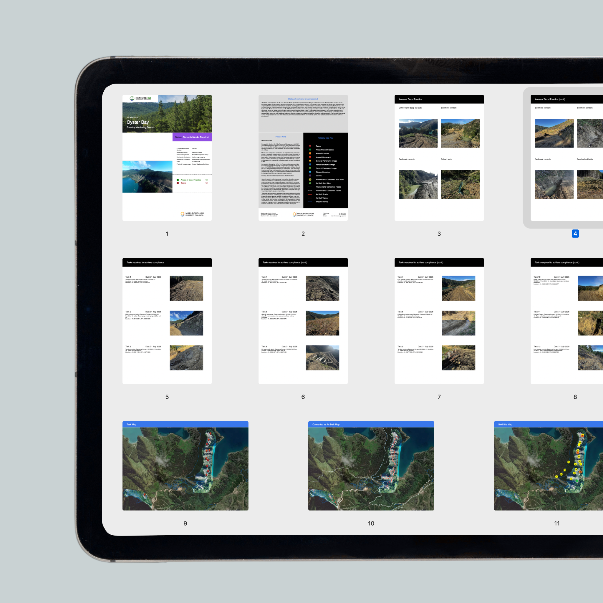 Generate comprehensive PDF reports aligned with NES-CF notifications and consent conditions.